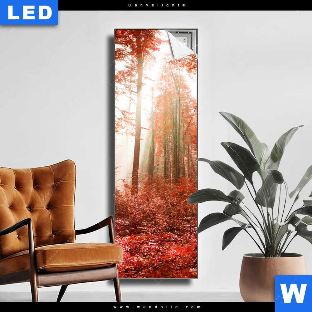 Canvalight® Leuchtbild | Roter Herbstwald | Schmal