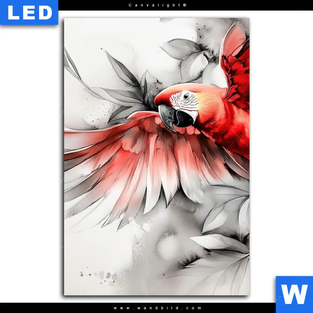 Canvalight® Leuchtbild | Roter Papagei im Flug | Hochformat