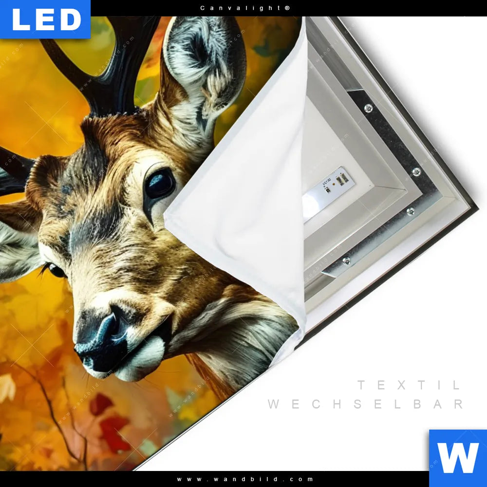 Canvalight® TEX Leuchtbild | Rothirsch im Herbstwald | Quadrat
