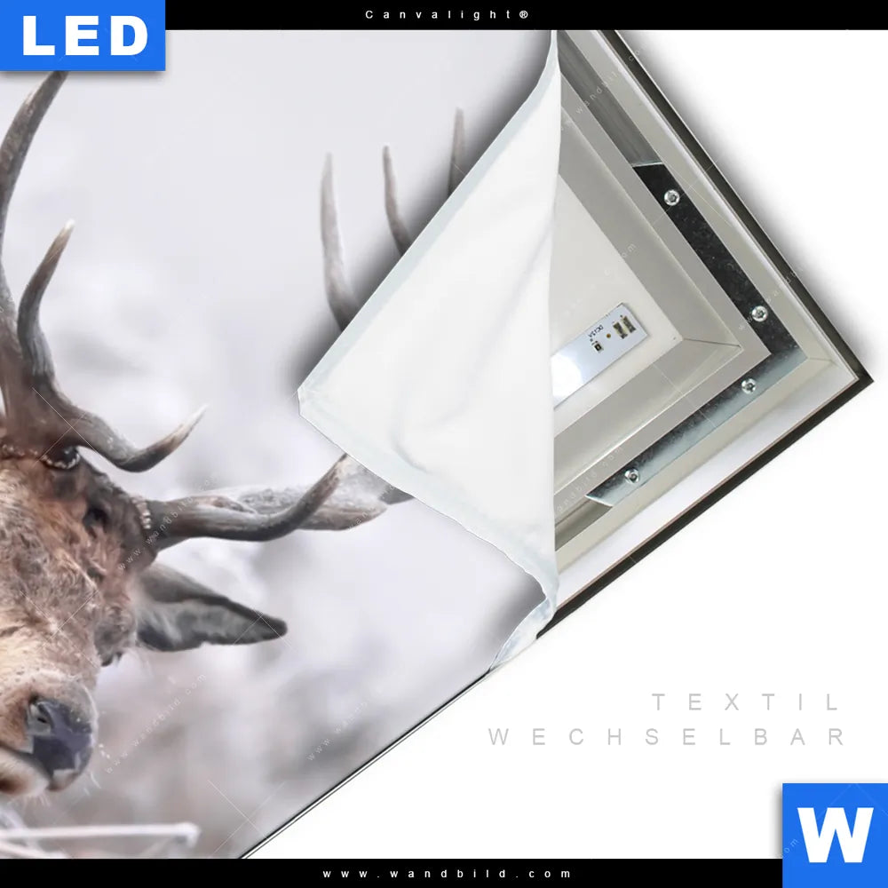 Canvalight® TEX Leuchtbild | Rothirsch im Winter | Hochformat