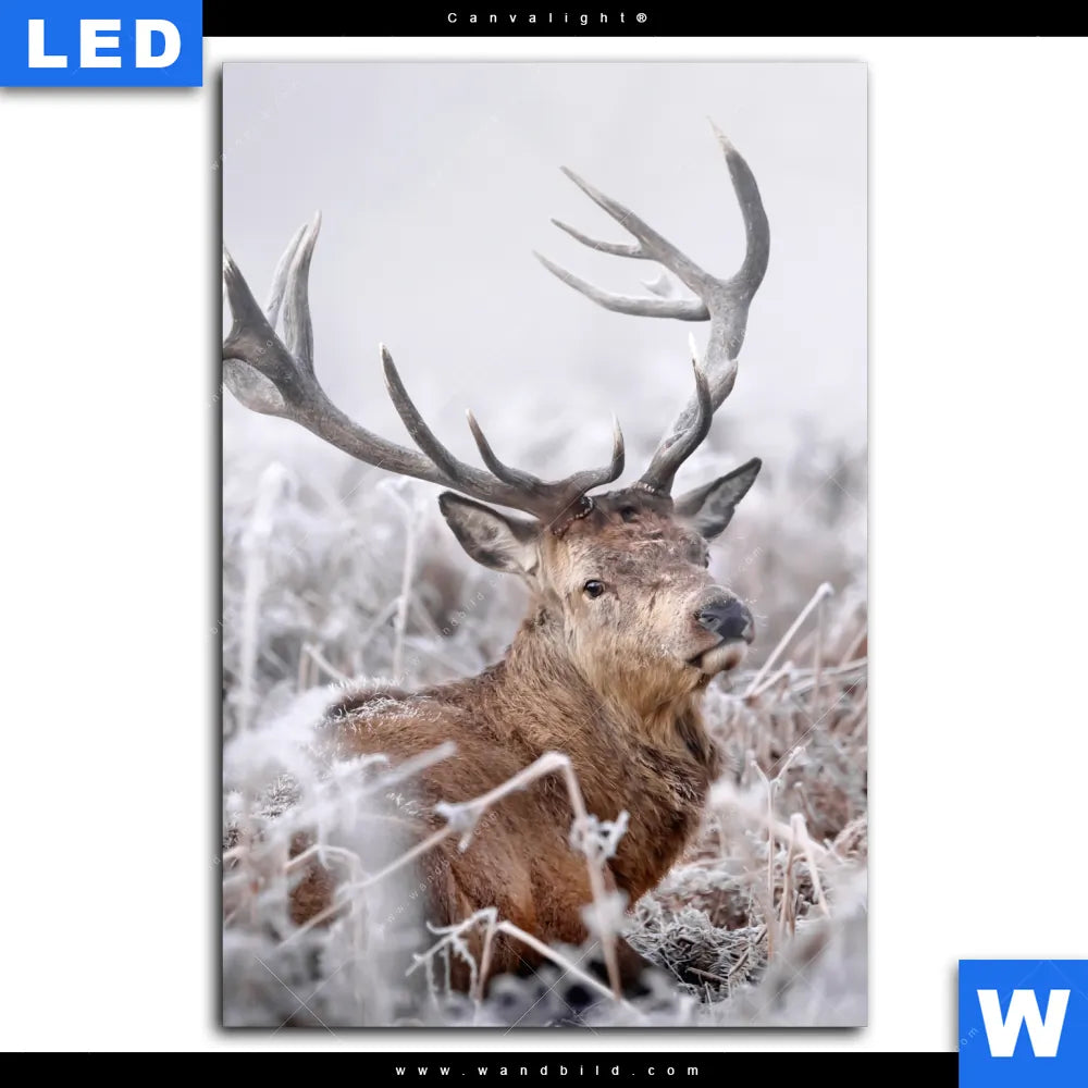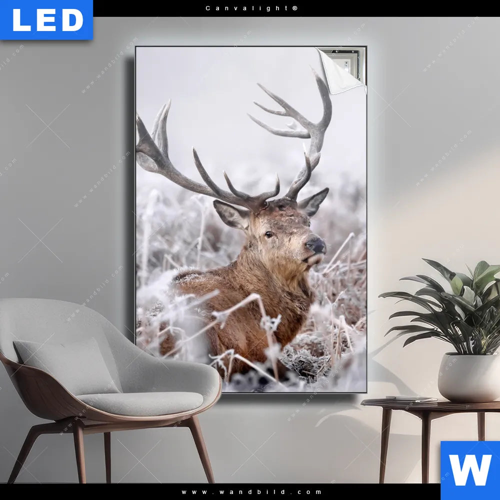 Canvalight® Leuchtbild | Rothirsch im Winter | Hochformat