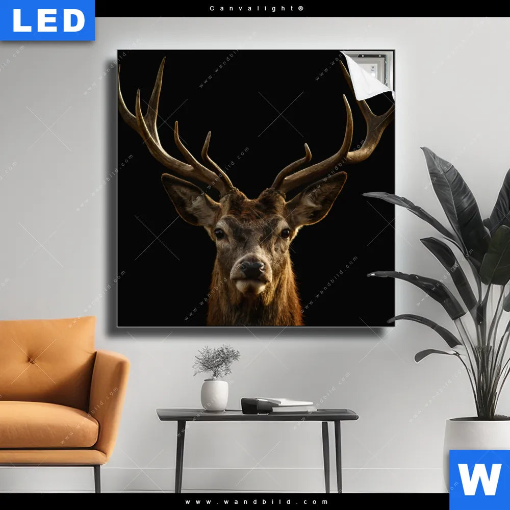 Canvalight® Leuchtbild | Rotwild Porträt | Quadrat