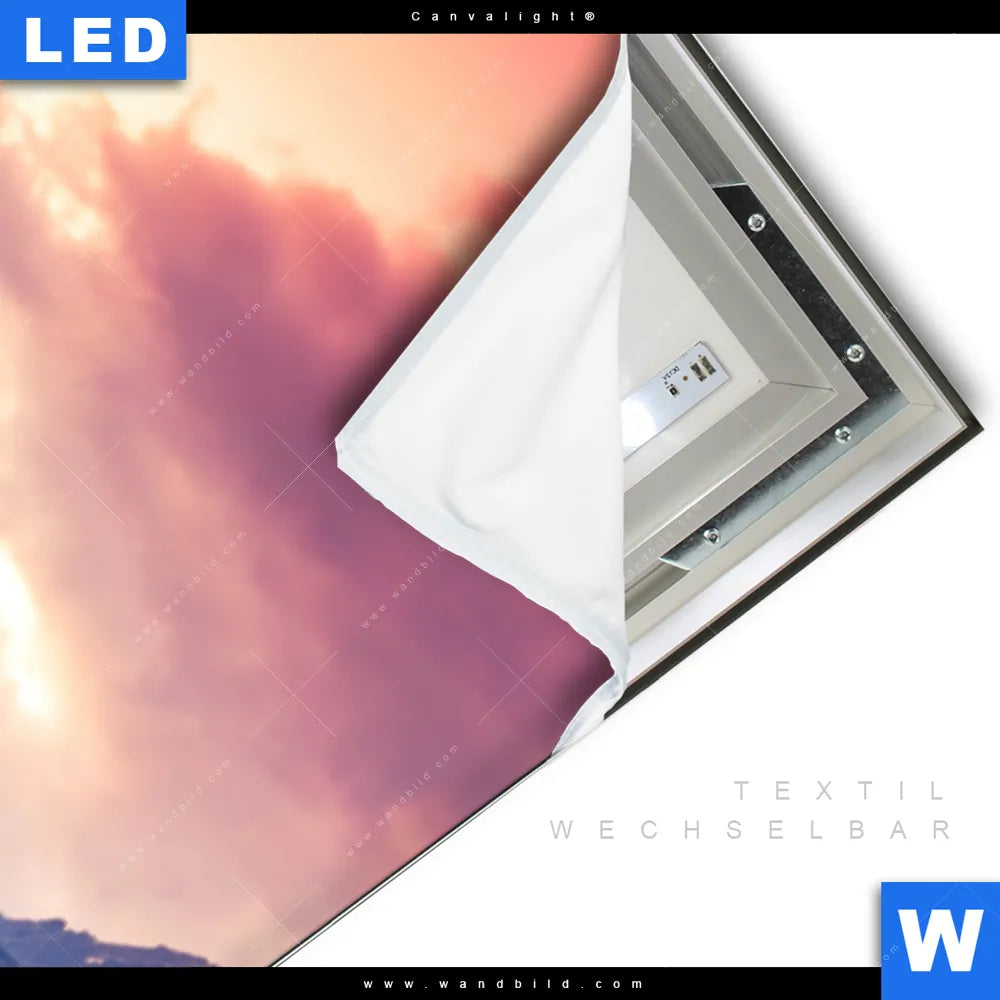 LED-Textilrahmen-Bild mit austauschbarem Landschaften Textil-Druck (Wechselbild)