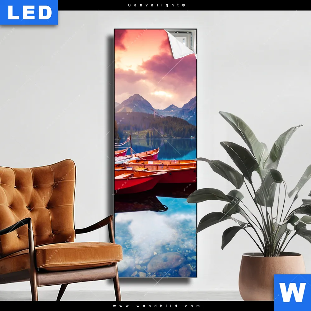 Canvalight® Leuchtbild | Ruhiger Bergsee | Schmal