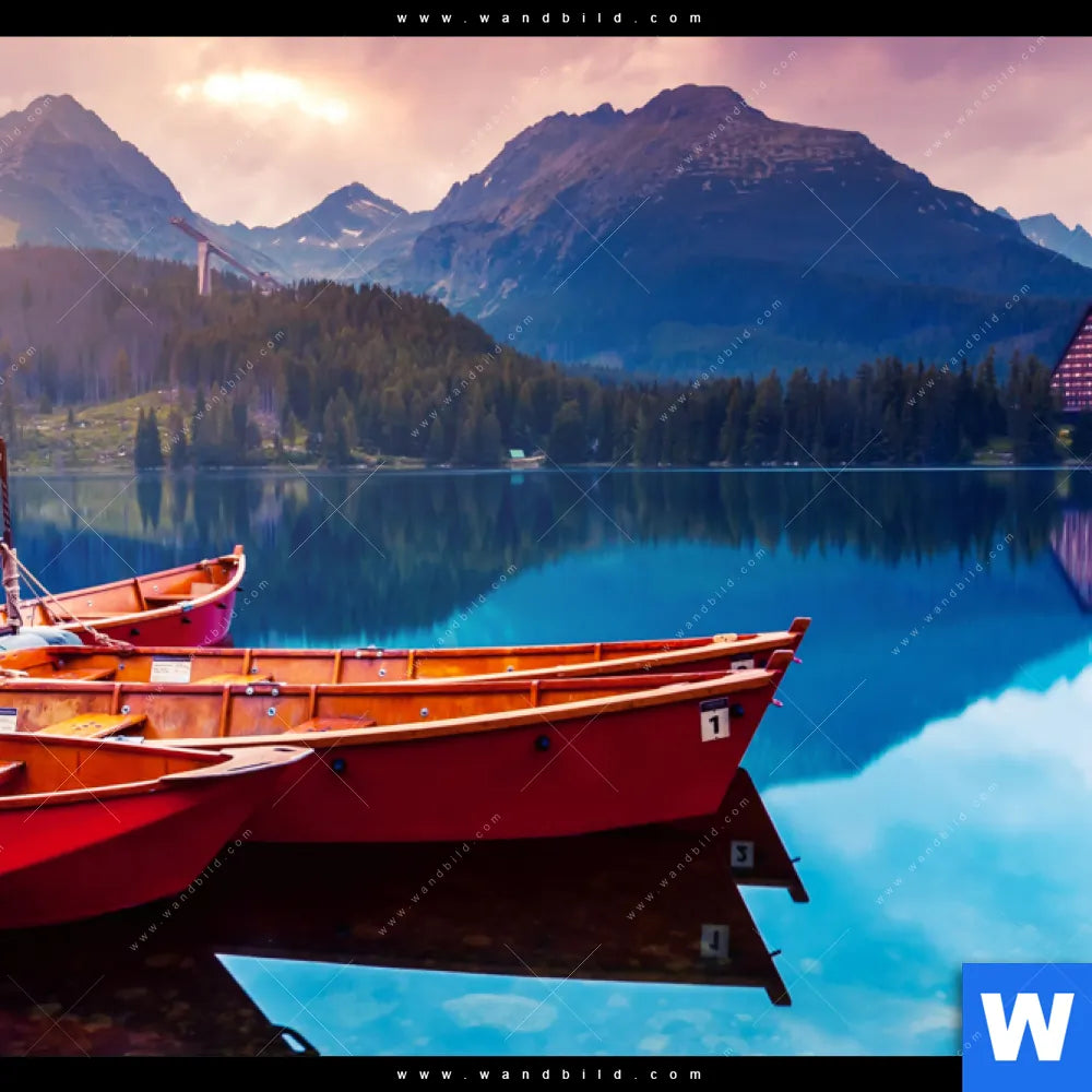 Canvalight® TEX Leuchtbild | Ruhiger Bergsee | Schmal