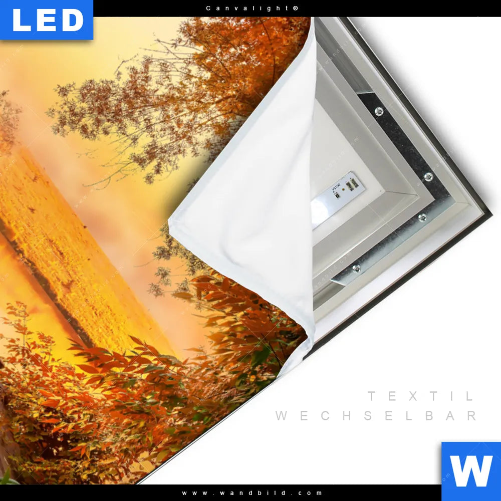 LED-Textilrahmen-Bild mit austauschbarem Landschaften Textil-Druck (Wechselbild)
