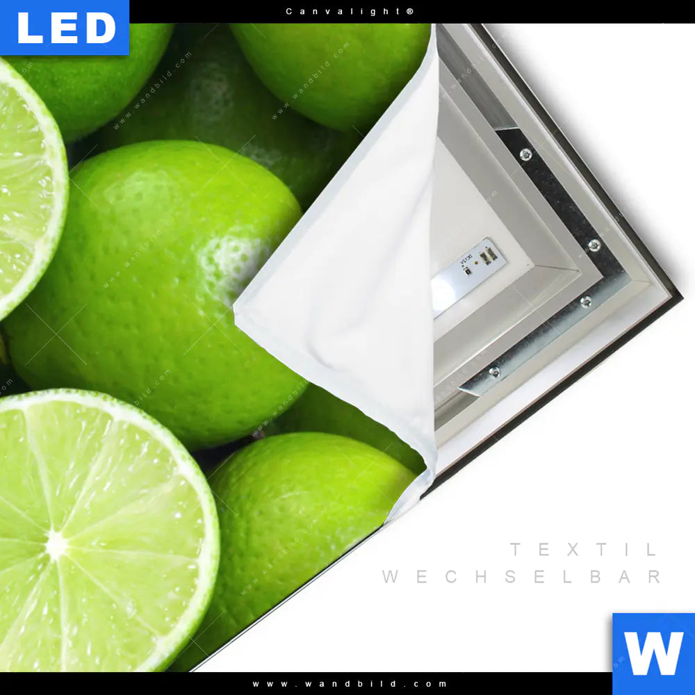 Canvalight® TEX Leuchtbild | Saftige Limetten voller Energie | Hochformat
