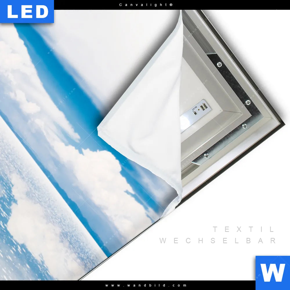 LED-Textilrahmen-Bild mit austauschbarem Landschaften Textil-Druck (Wechselbild)