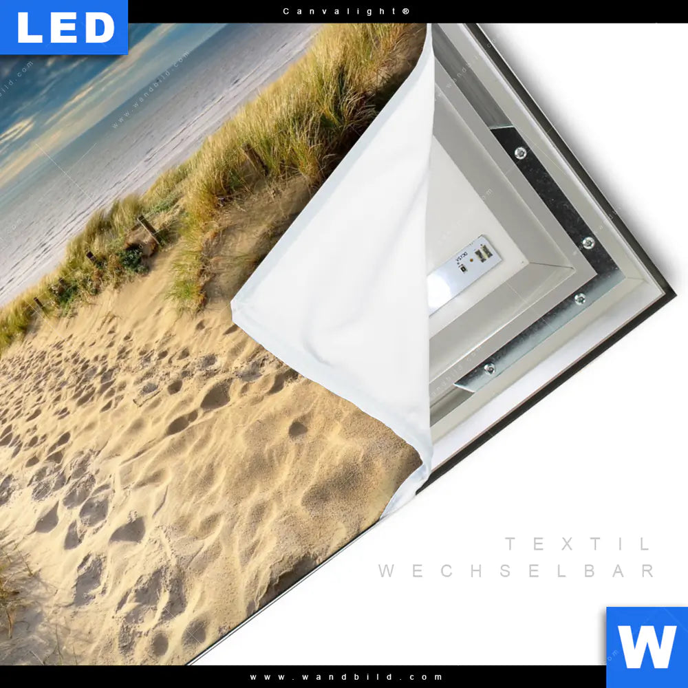 LED-Textilrahmen-Bild mit austauschbarem Strand - Meer, Landschaften Textil-Druck (Wechselbild)