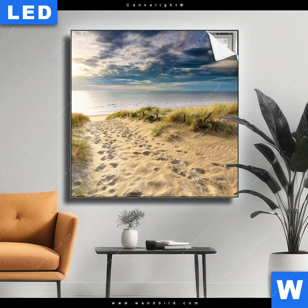 Canvalight® Leuchtbild | Sandpfad zum Nordseestrand | Quadrat