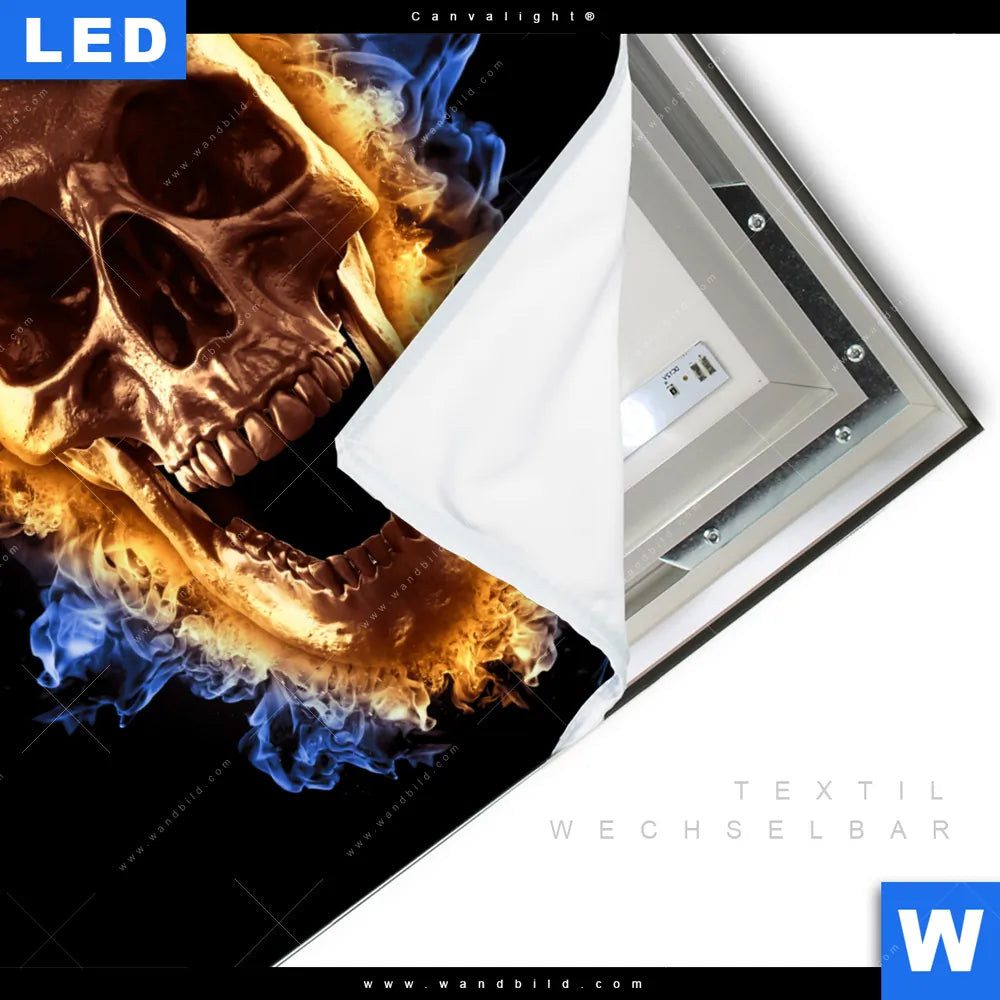 Canvalight® TEX Leuchtbild | Schädel in Flammen | Quadrat