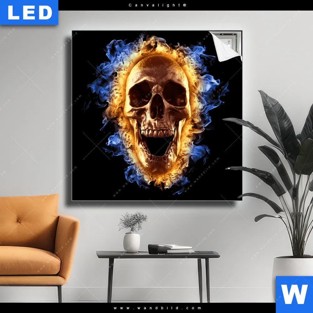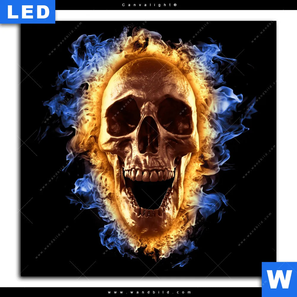 Canvalight® Leuchtbild | Schädel in Flammen | Quadrat