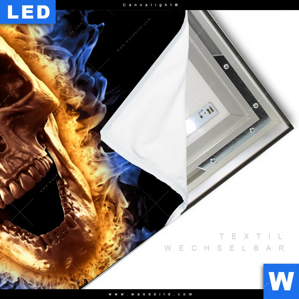 Canvalight® TEX Leuchtbild | Schädel in Flammen | Querformat