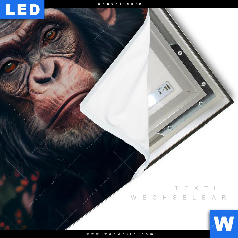 Canvalight® TEX Leuchtbild | Schimpanse zwischen Blumen | Quadrat