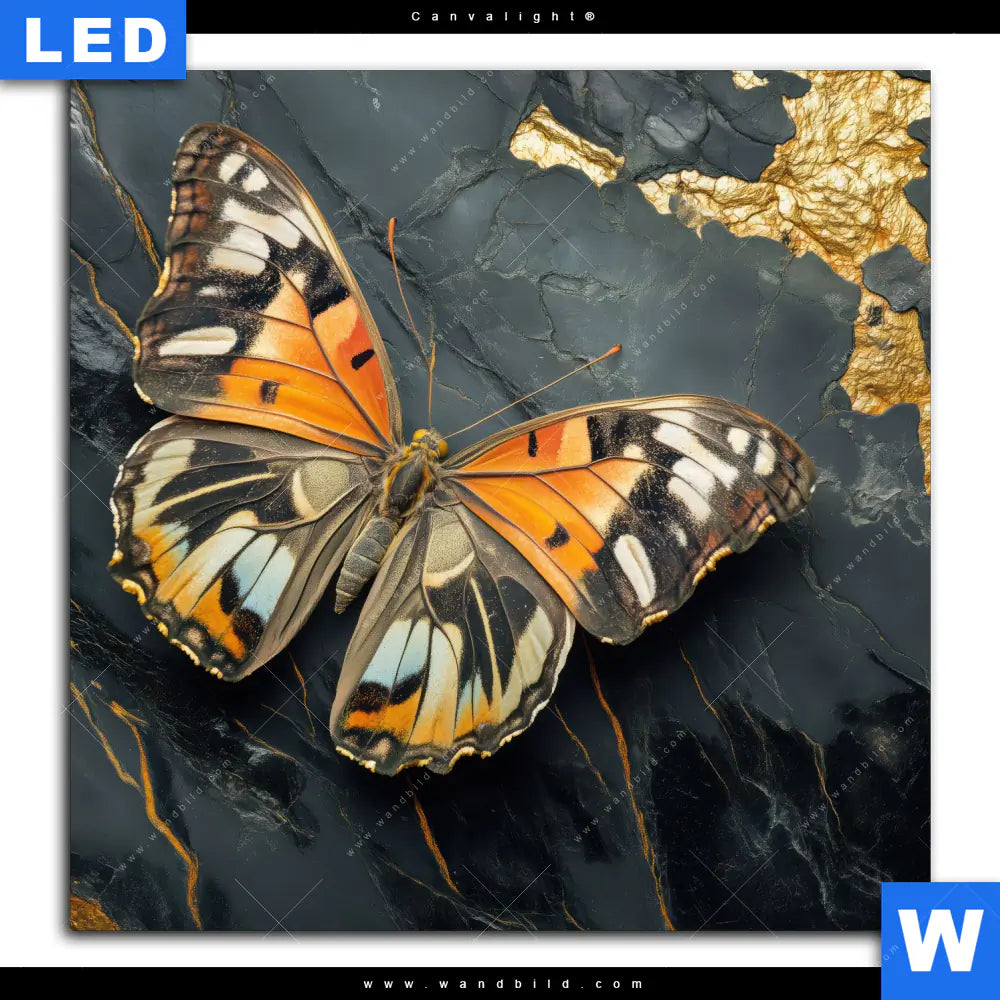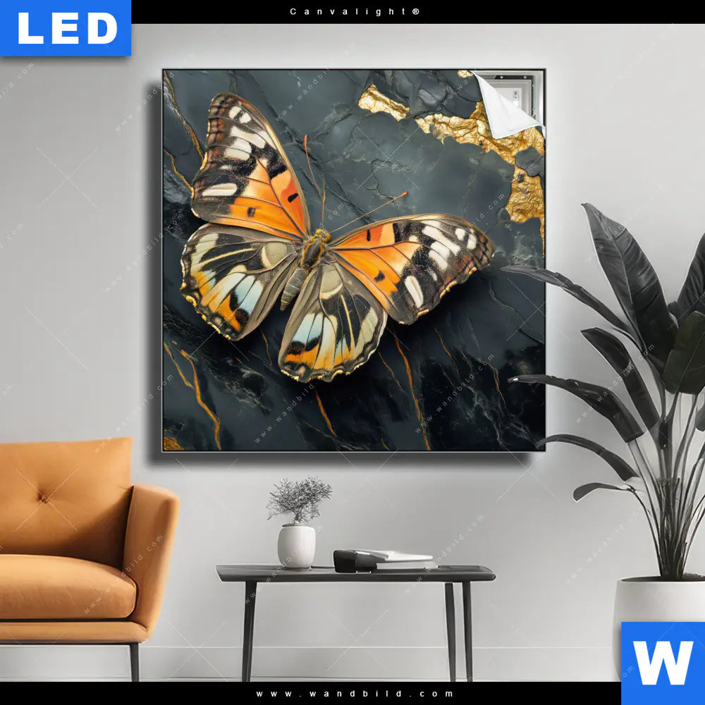 Canvalight® TEX Leuchtbild | Schmetterling auf Marmor | Quadrat