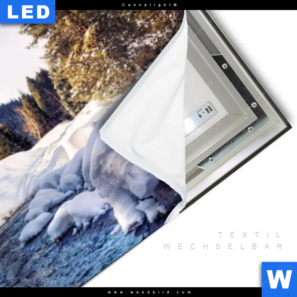 LED-Textilrahmen-Bild mit austauschbarem Landschaften, Winter Textil-Druck (Wechselbild)