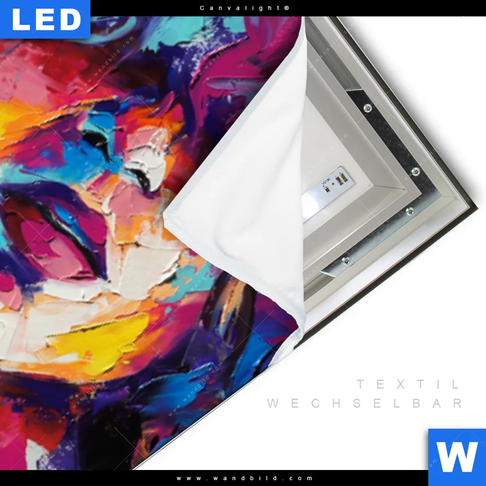 LED-Textilrahmen-Bild mit austauschbarem Porträts - Menschen Textil-Druck (Wechselbild)