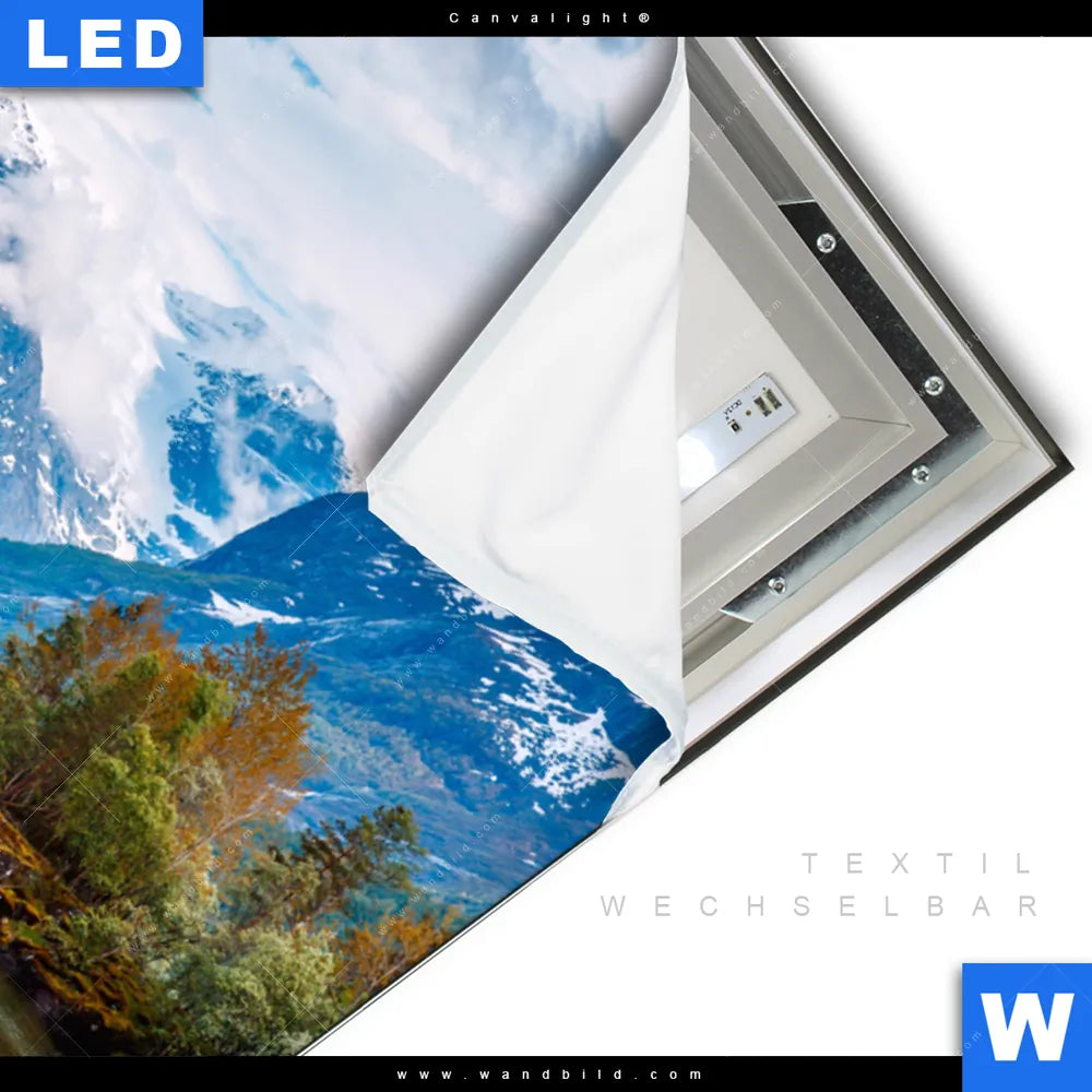 LED-Textilrahmen-Bild mit austauschbarem Landschaften Textil-Druck (Wechselbild)