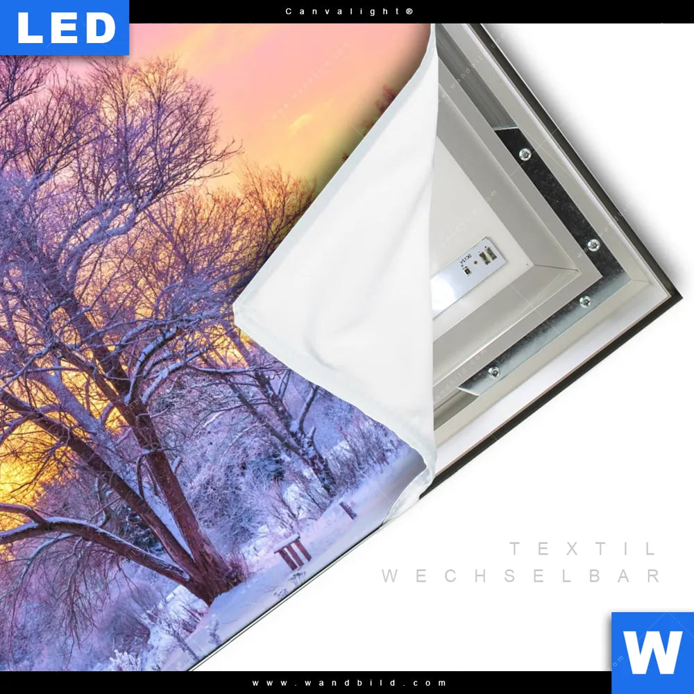 LED-Textilrahmen-Bild mit austauschbarem Landschaften, Winter, Wald - Bäume Textil-Druck (Wechselbild)