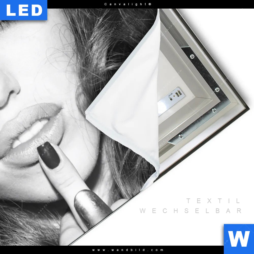 LED-Textilrahmen-Bild mit austauschbarem Porträts - Menschen Textil-Druck (Wechselbild)