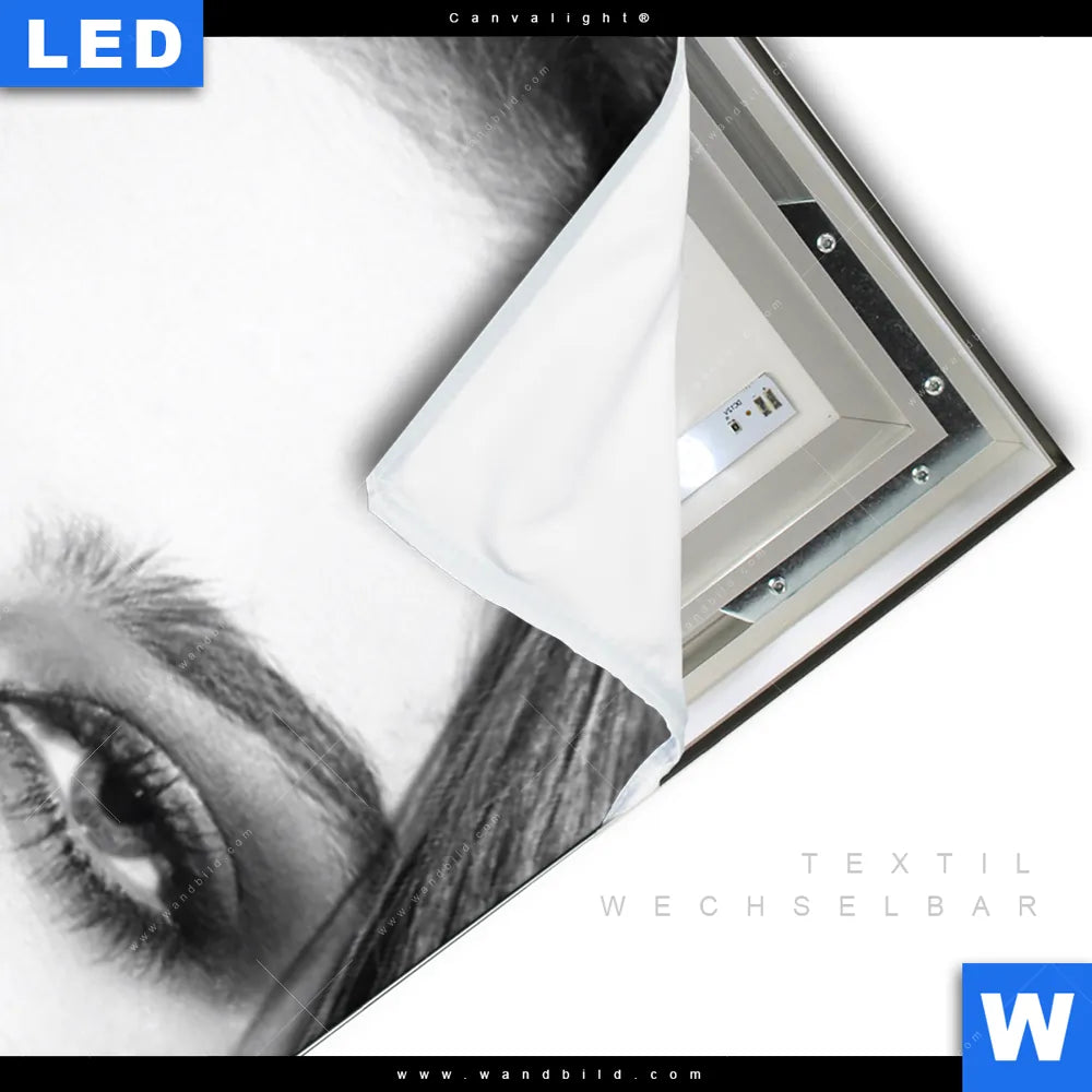 LED-Textilrahmen-Bild mit austauschbarem Porträts - Menschen Textil-Druck (Wechselbild)