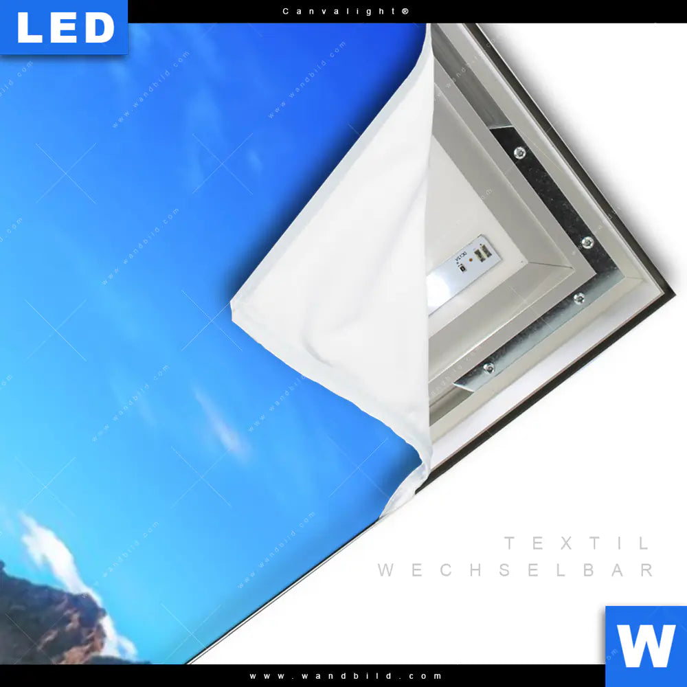 LED-Textilrahmen-Bild mit austauschbarem Landschaften Textil-Druck (Wechselbild)