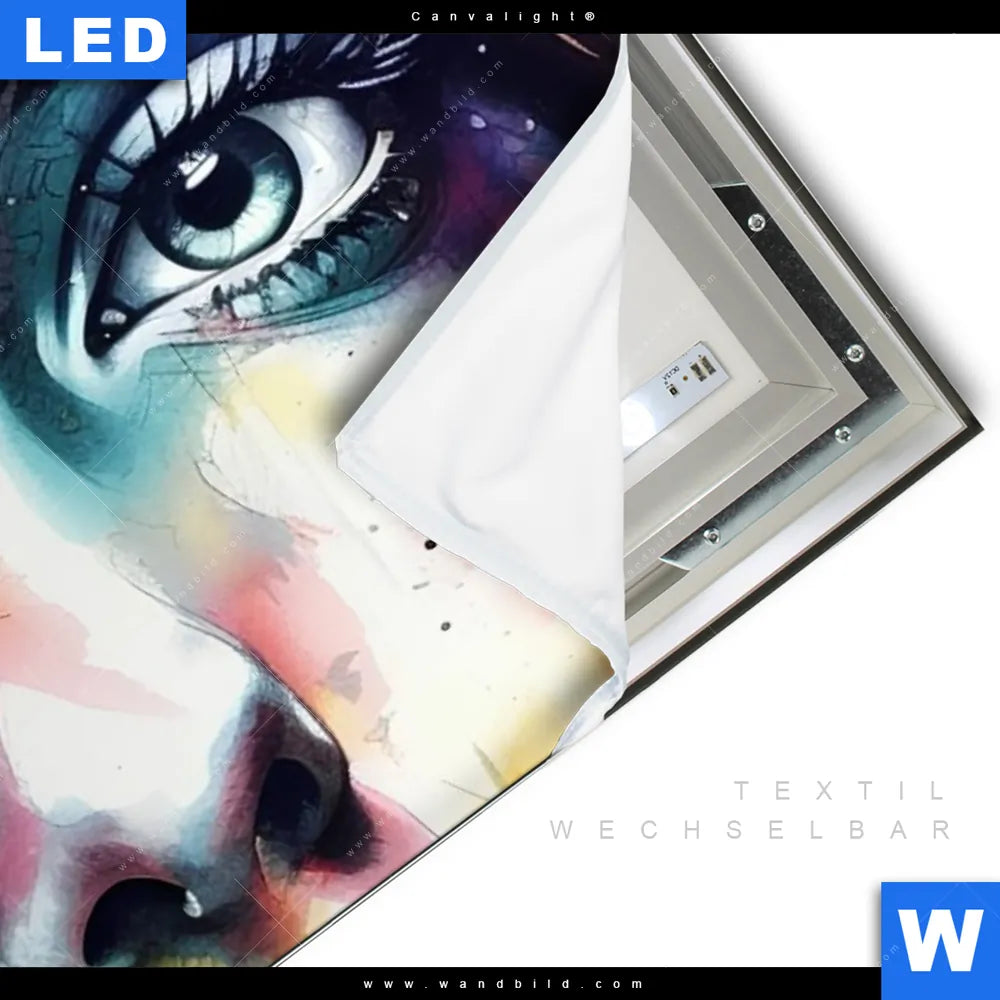 LED-Textilrahmen-Bild mit austauschbarem Porträts - Menschen Textil-Druck (Wechselbild)