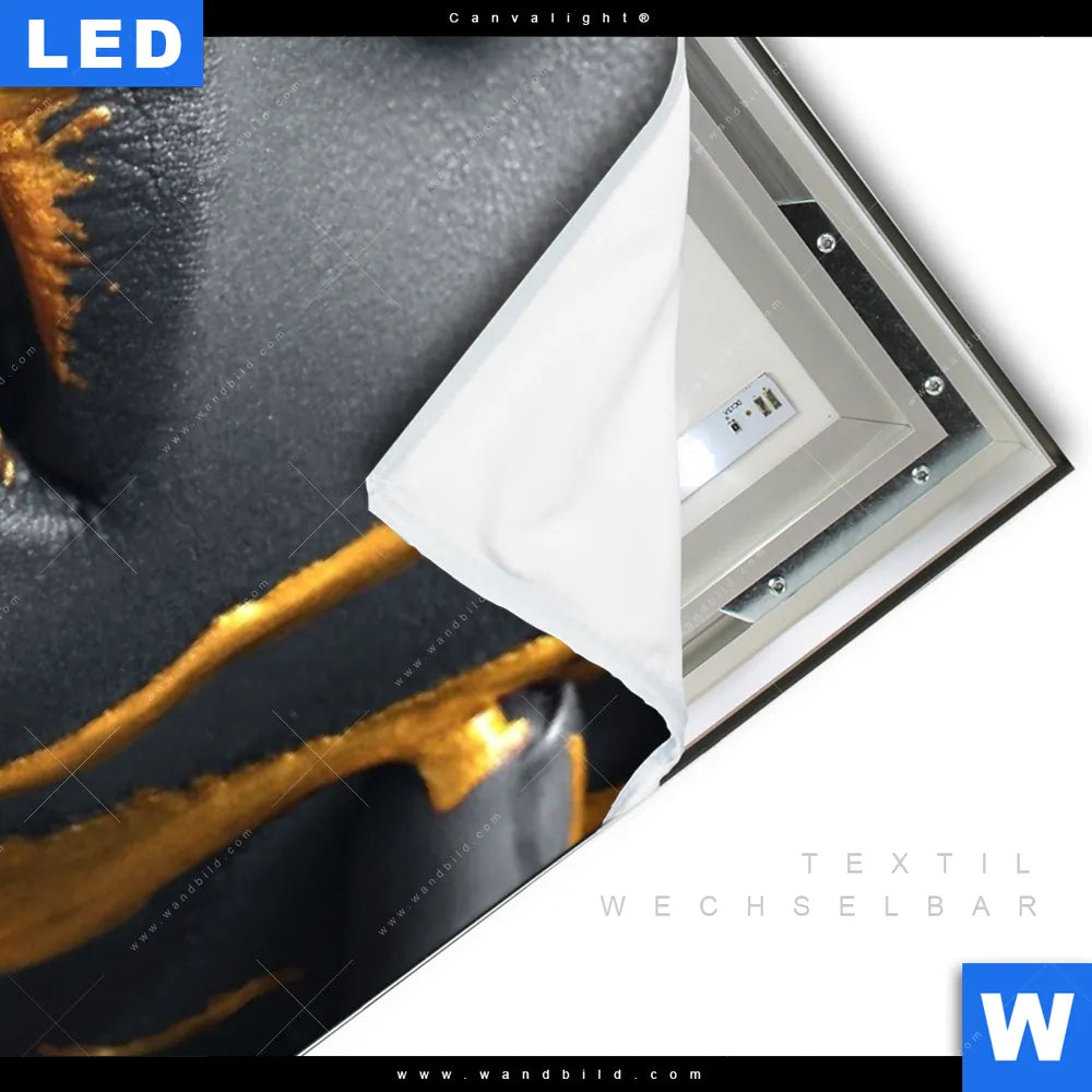 Canvalight® TEX Leuchtbild | Schönheit in Silber & Gold | Hochformat