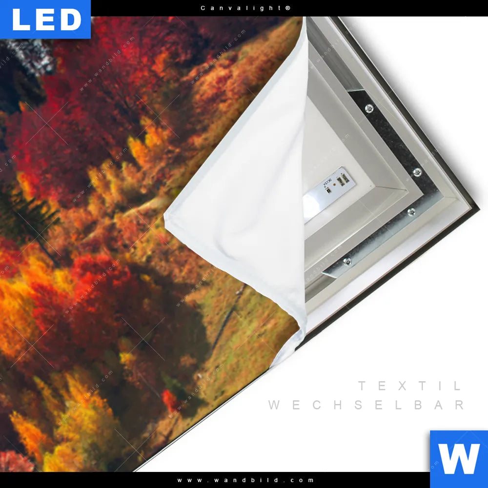LED-Textilrahmen-Bild mit austauschbarem Landschaften Textil-Druck (Wechselbild)