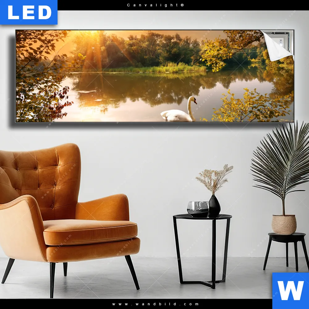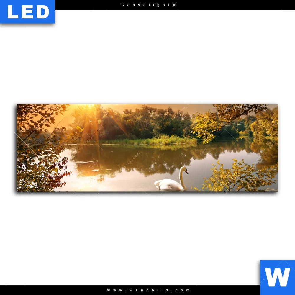 Canvalight® Leuchtbild | Schwan im Teich | Panorama