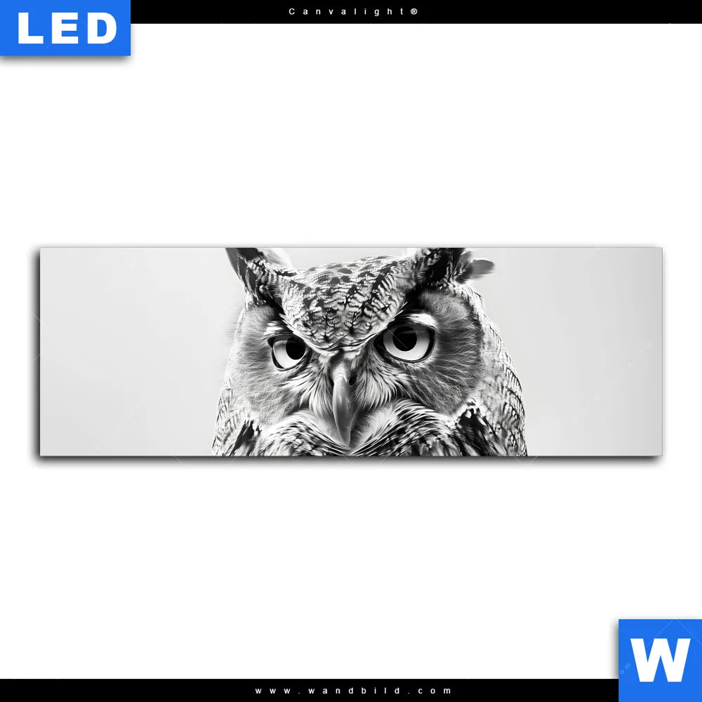Canvalight® Leuchtbild | Schwarz-Weiß Eulenportrait | Panorama
