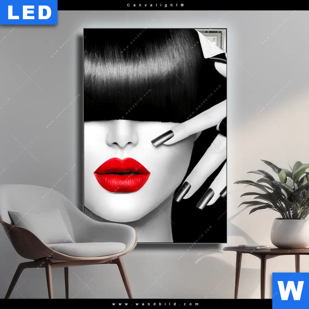 Canvalight® Leuchtbild | Schwarze Eleganz & rote Lippen | Hochformat