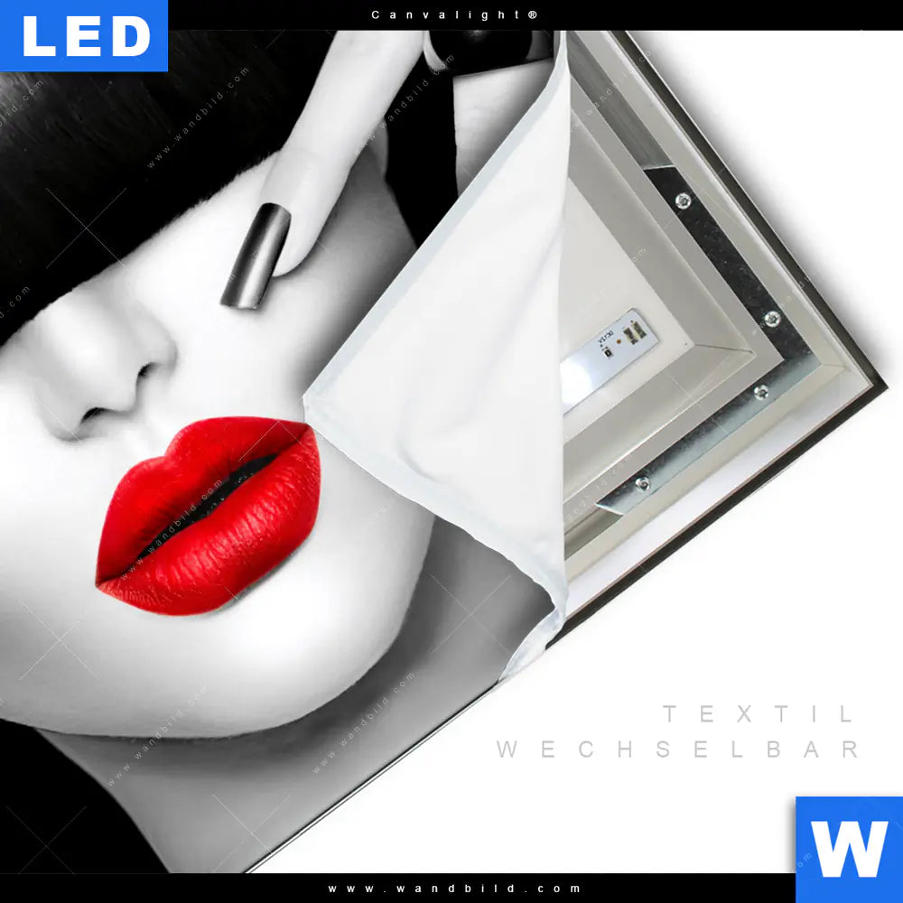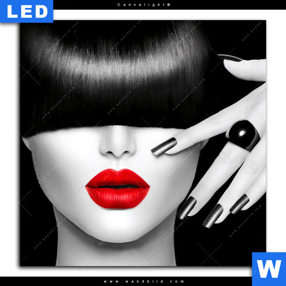 Canvalight® TEX Leuchtbild | Schwarze Eleganz & rote Lippen | Quadrat