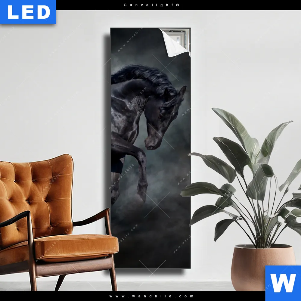 Canvalight® Leuchtbild | Schwarzer Hengst | Schmal