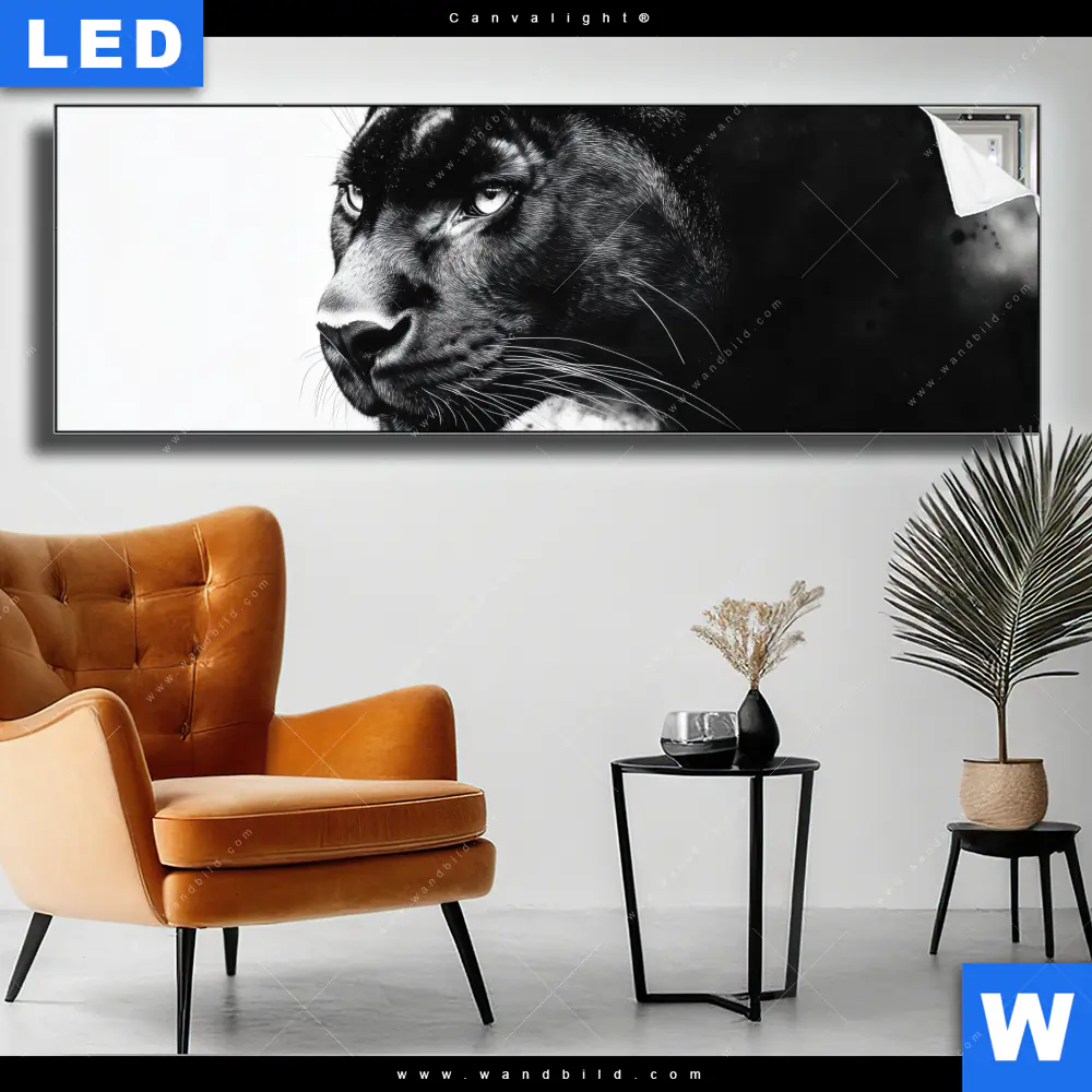 Canvalight® Leuchtbild | Schwarzer Panther | Panorama