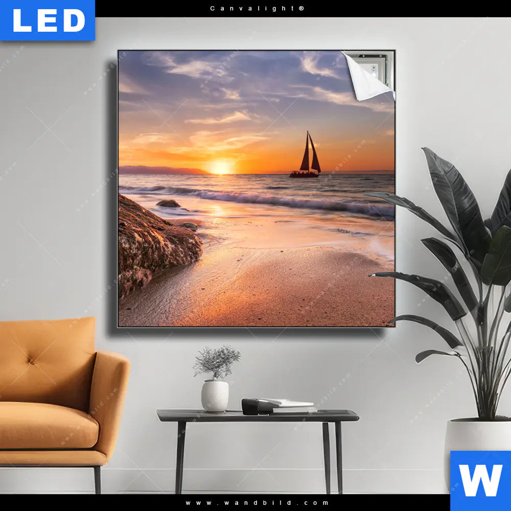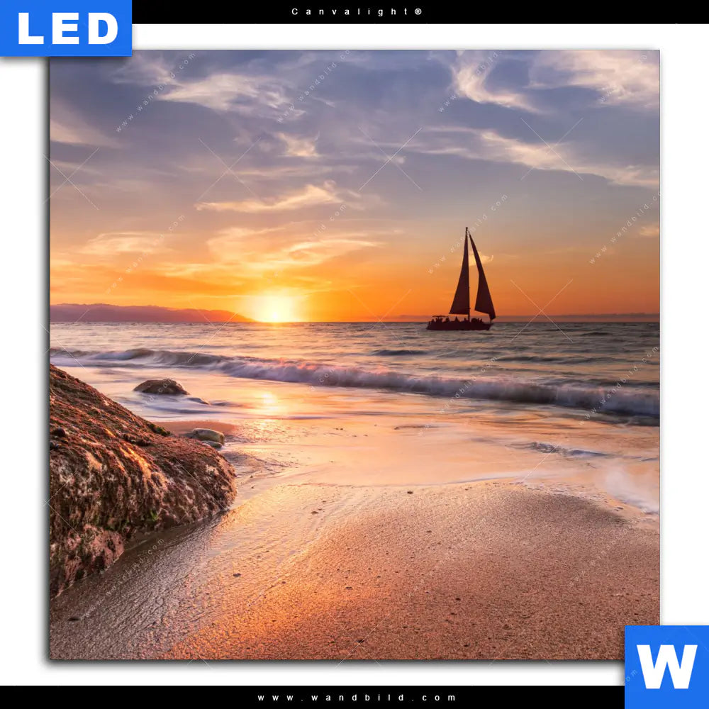 Canvalight® Leuchtbild | Segelboot im Sonnenuntergang | Quadrat