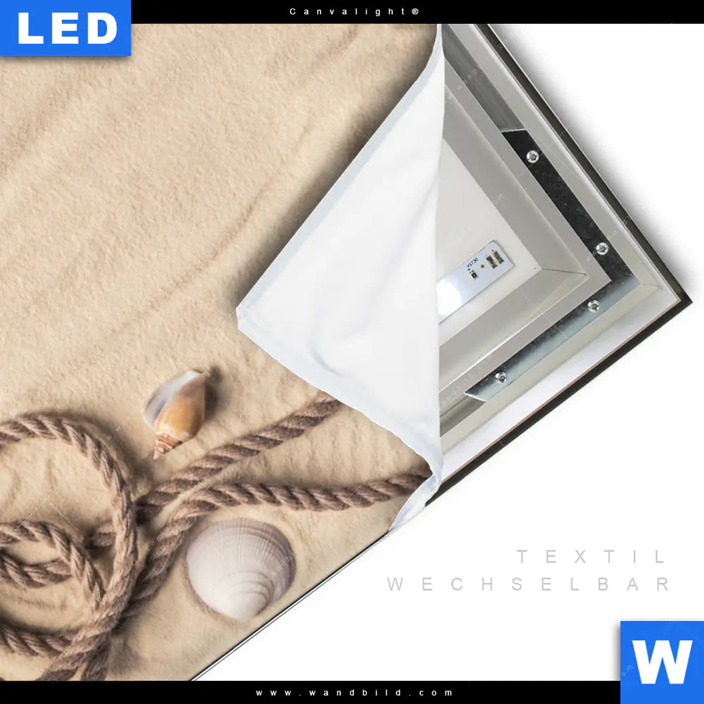 LED-Textilrahmen-Bild mit austauschbarem Strand - Meer Textil-Druck (Wechselbild)