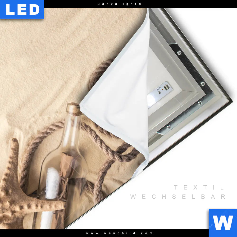 LED-Textilrahmen-Bild mit austauschbarem Strand - Meer Textil-Druck (Wechselbild)
