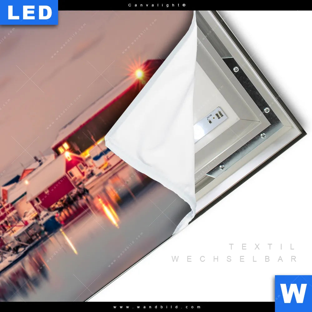 LED-Textilrahmen-Bild mit austauschbarem Landschaften, Städte - Skylines Textil-Druck (Wechselbild)