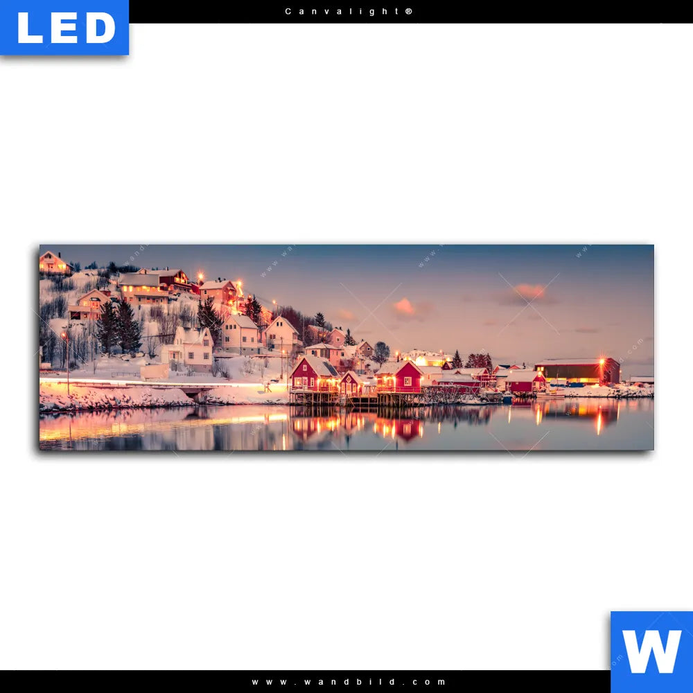 Canvalight® Leuchtbild | Skandinavische Stadt bei Nacht | Panorama