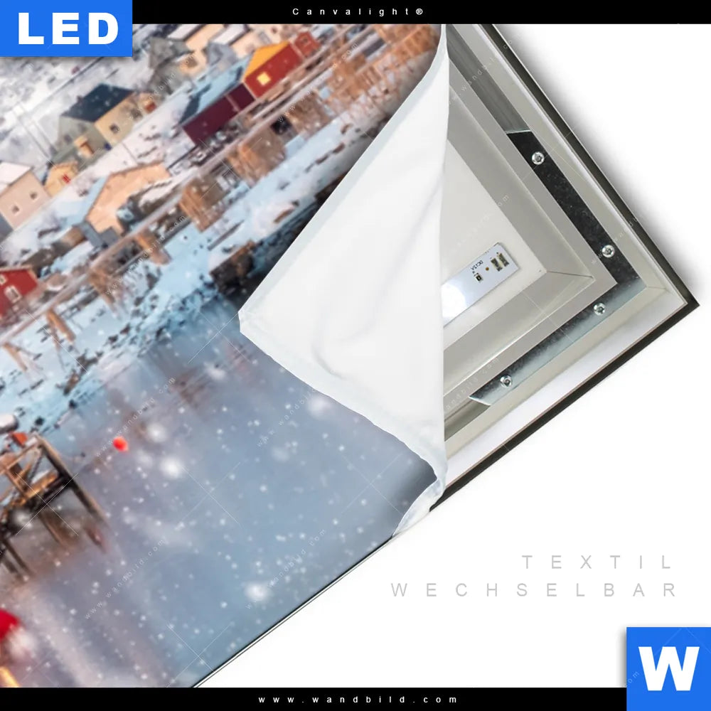 Canvalight® TEX Leuchtbild | Skandinavisches Dorf im Schnee | Panorama