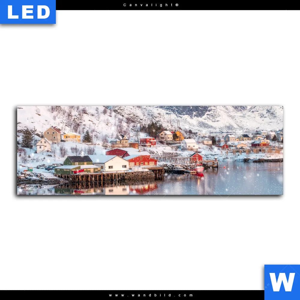 Canvalight® Leuchtbild | Skandinavisches Dorf im Schnee | Panorama