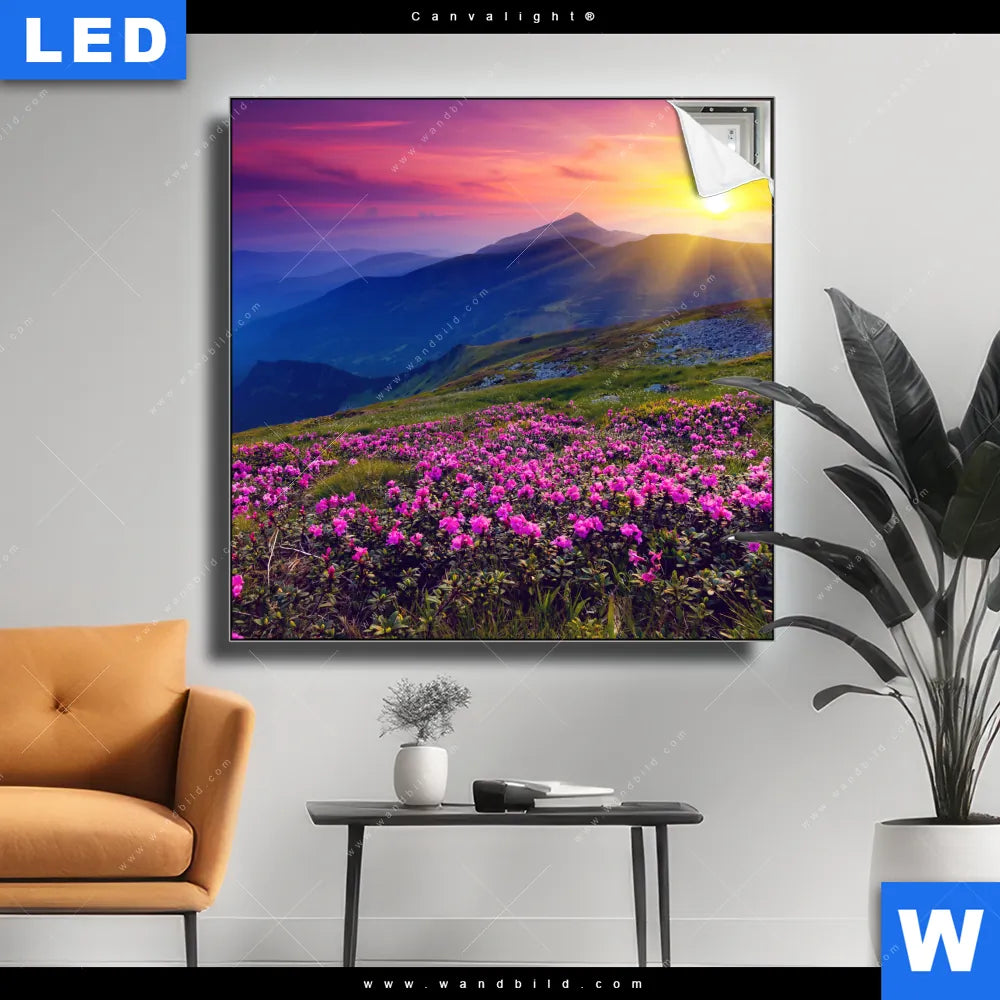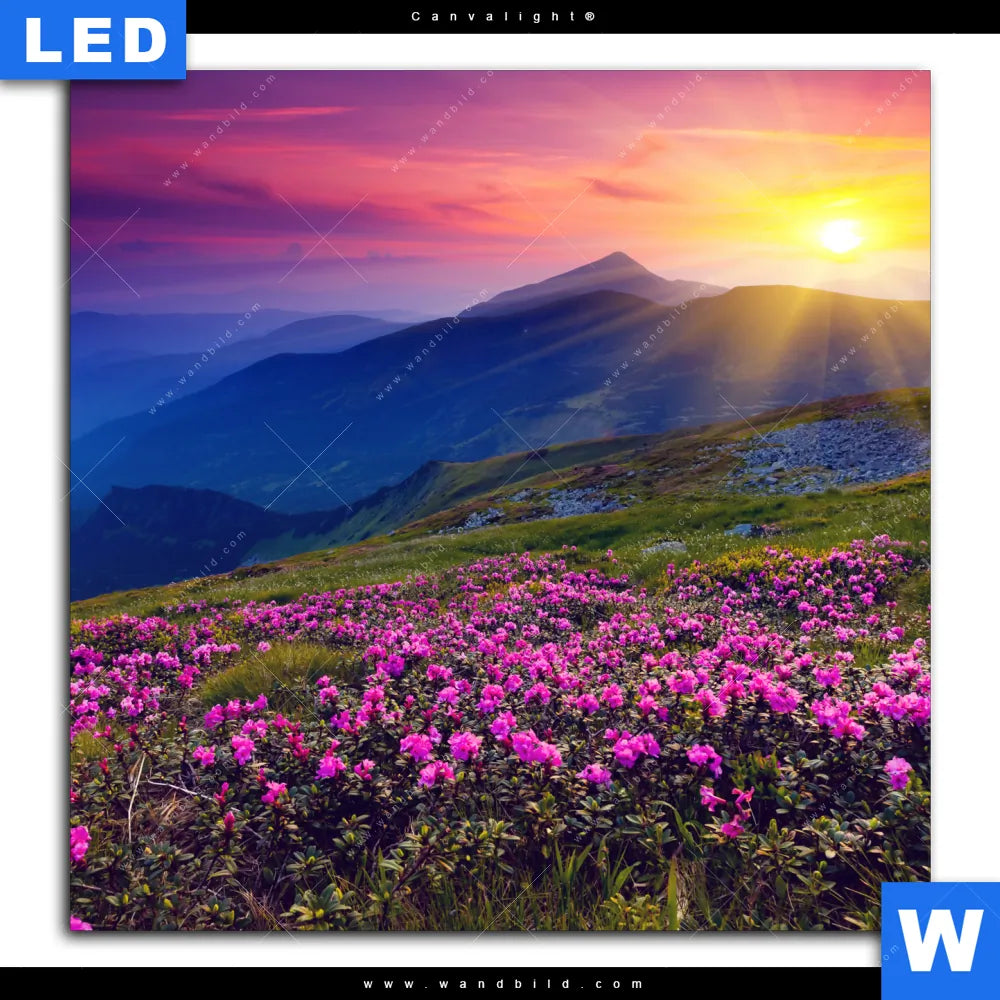 Canvalight® TEX Leuchtbild | Sommerberg im Sonnenuntergang | Quadrat
