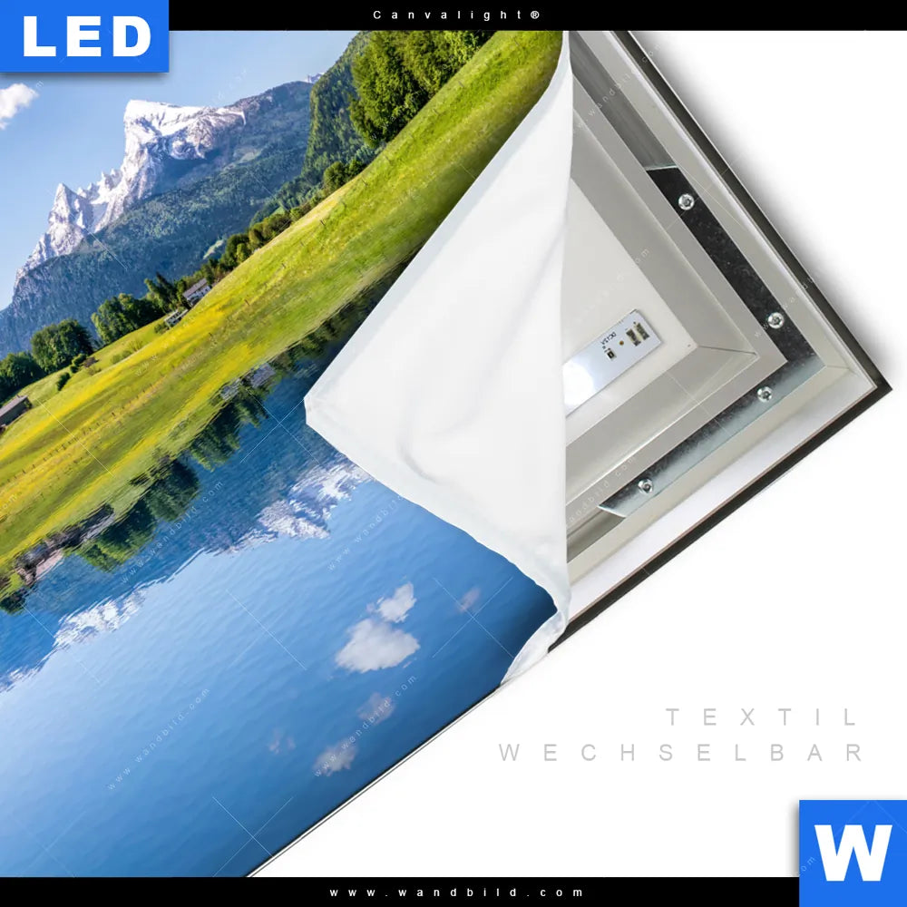 LED-Textilrahmen-Bild mit austauschbarem Landschaften Textil-Druck (Wechselbild)