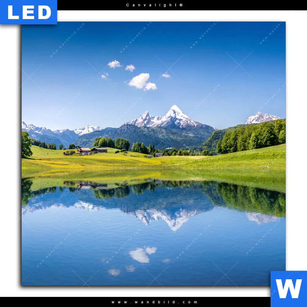 Canvalight® Leuchtbild | Sommerlandschaft in den Alpen | Quadrat