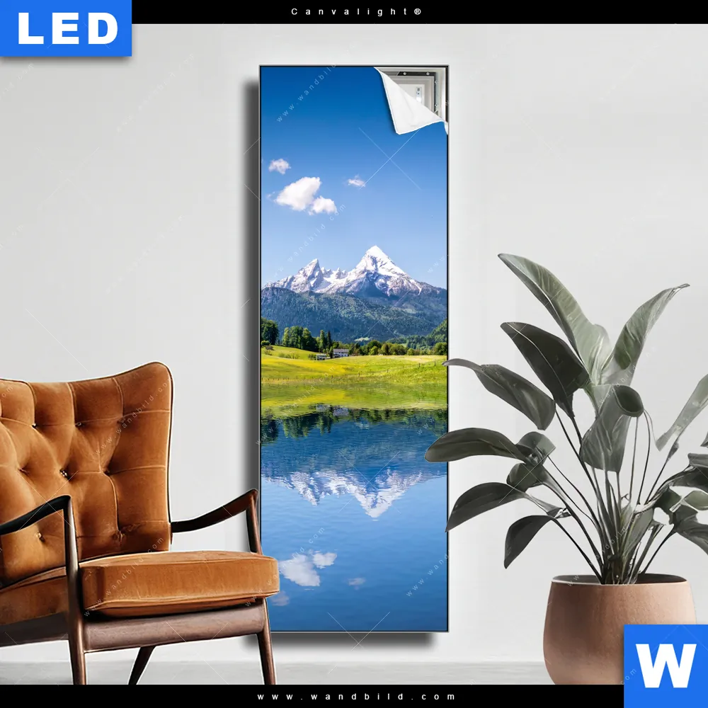 Canvalight® TEX Leuchtbild | Sommerlandschaft in den Alpen | Schmal