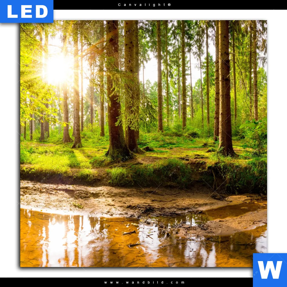 Canvalight® Leuchtbild | Sonne im grünen Wald | Quadrat