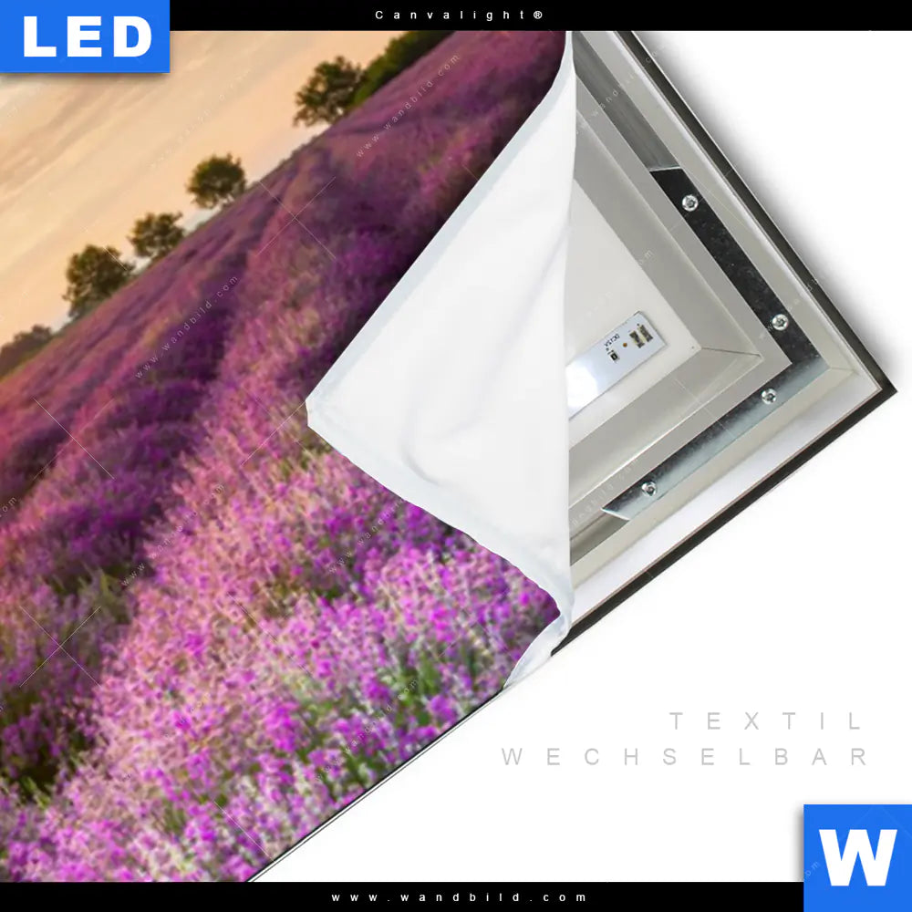 LED-Textilrahmen-Bild mit austauschbarem Landschaften Textil-Druck (Wechselbild)