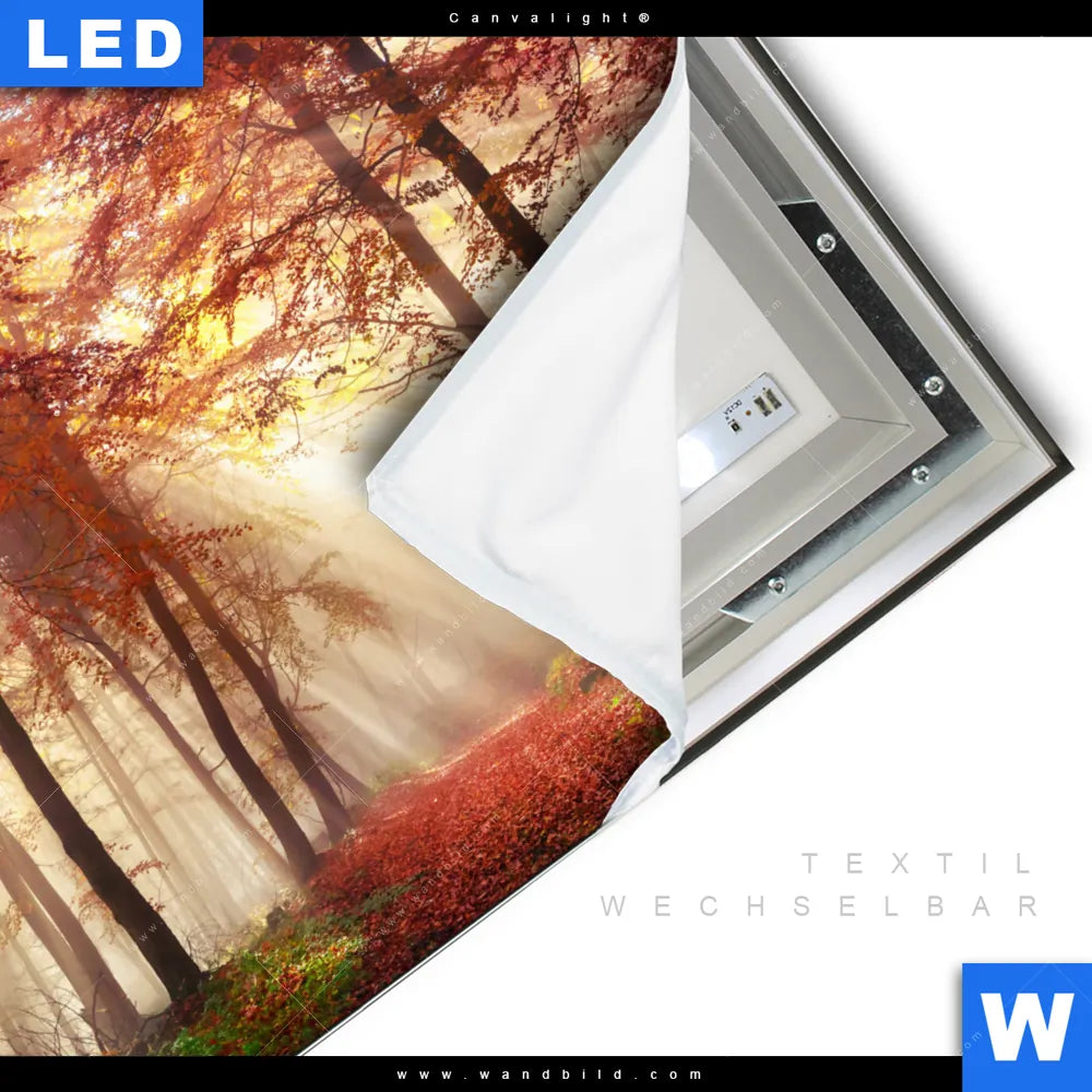 LED-Textilrahmen-Bild mit austauschbarem Landschaften, Wald - Bäume Textil-Druck (Wechselbild)