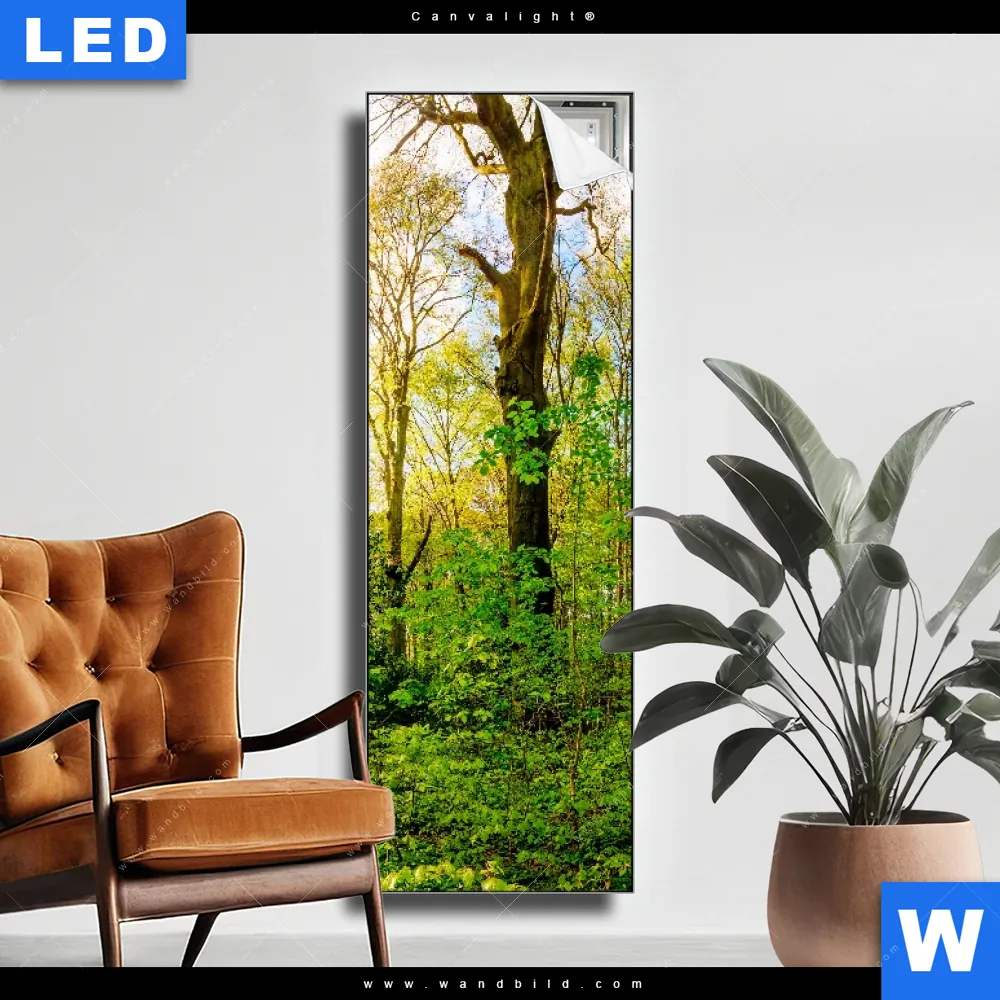 Canvalight® Leuchtbild | Sonnenlicht im Wald | Schmal
